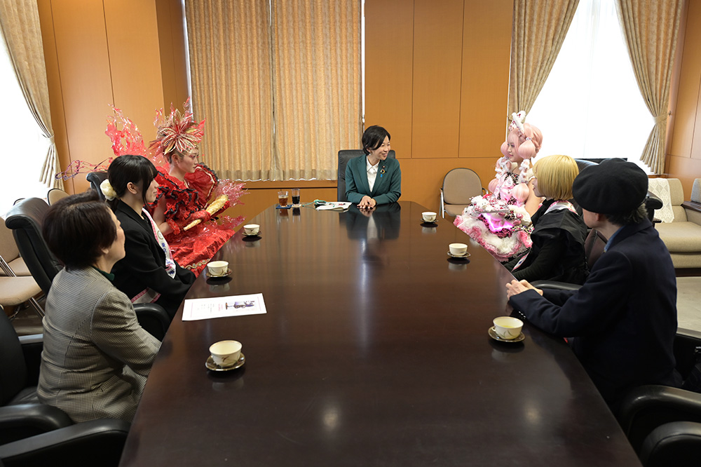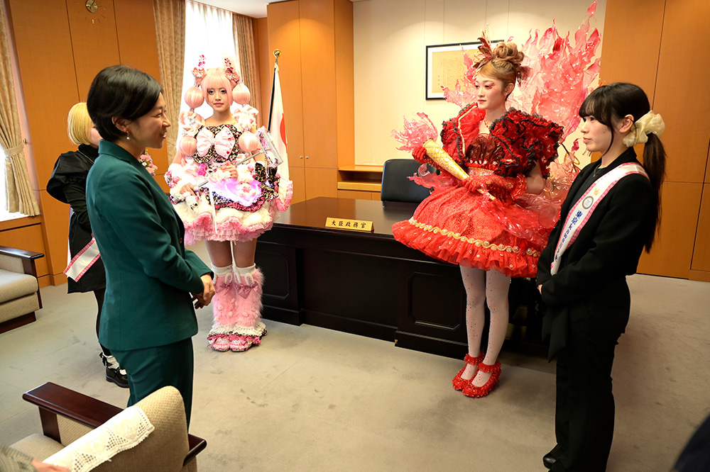 (市原)これまで積み重ねてきた努力や作品を国の教育を担う方々にお話しすることができ、とても光栄でした。とても緊張はしましたが、福田政務官から温かいお言葉を頂きわたしの作品に対する想いが誰かの心に届いたのだと実感することができて、とても嬉しかったです。これからも作品づくりや美しさを作り続ける事に真摯に向き合って行きたいと強く感じました。